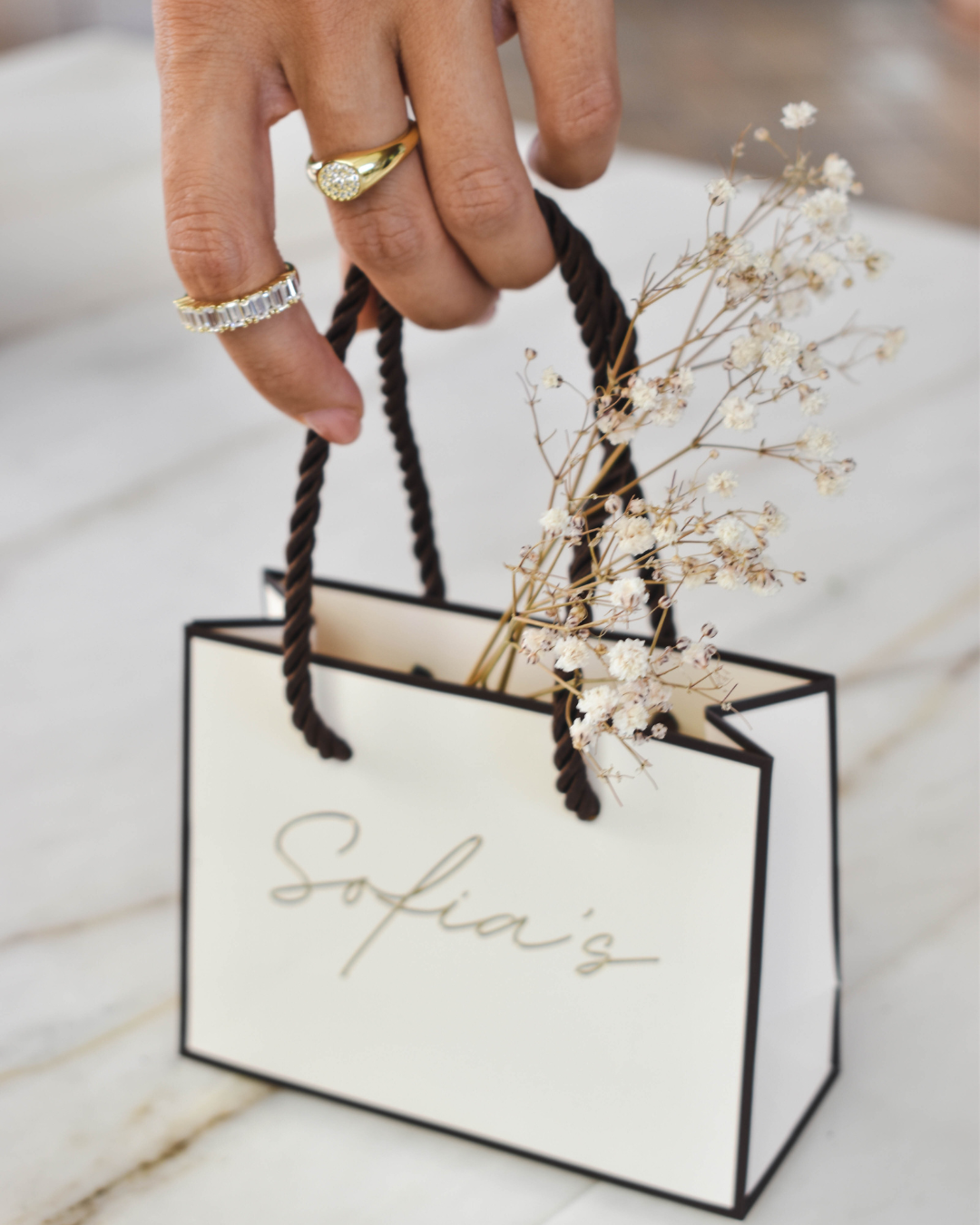 Every order is packed with premium pouches and boxes branded with our Sofia's logo